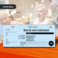 Avec www.TickeTombola.fr vous pouvez personnaliser vos tickets numérotés directement en ligne. L'impression est réalisée avec une presse numérique sur du papier 80g. Les tickets sont détachables grâce à une micro-perforation.